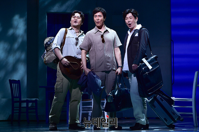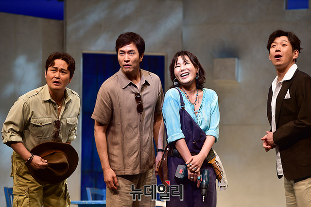 배우 신영숙, 김정민, 민영기, 김진수가 29일 오후 서울 중구 충무아트센터 대극장에서 열린 뮤지컬 맘마미아! 프레스콜에서 하이라이트 장면을 선보이고 있다.