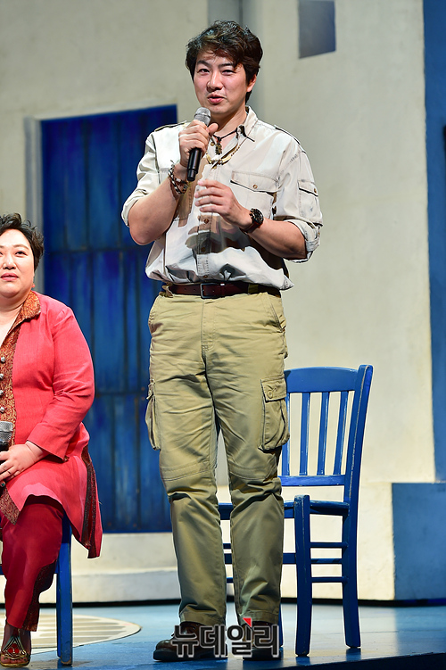 배우 송일국이 29일 오후 서울 중구 충무아트센터에서 열린 뮤지컬 '맘마미아!' 프레스콜에서 인사말을 하고 있다.
