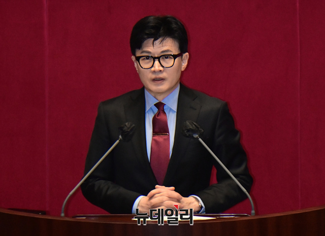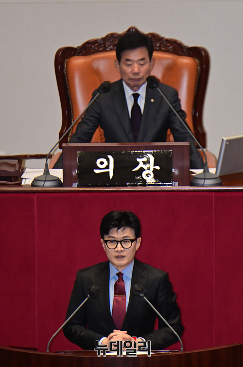 한동훈 법무부 장관이 30일 오후 국회에서 열린 본회의에서 하영제 국민의힘 의원의 체포동의요청 이유설명을 하고 있다.