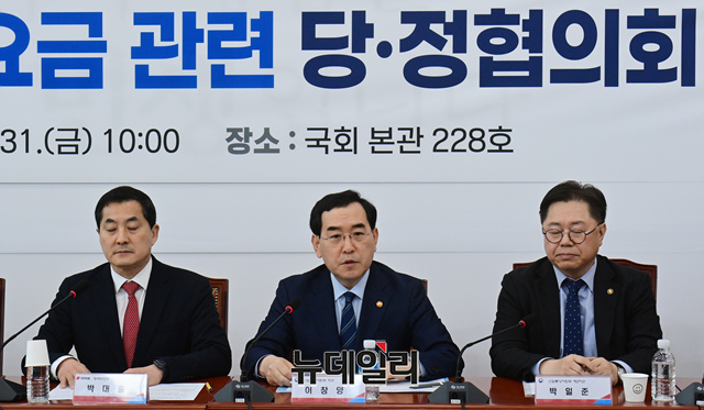 이창양 산업통상자원부 장관 31일 오전 국회에서 열린 전기·가스 요금 관련 당·정협의회에서 발언을 하고 있다.