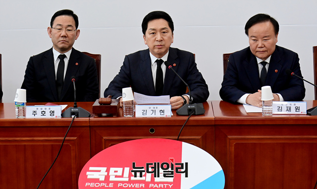 김기현 국민의힘 대표가 3일 국회에서 열린 최고위원회의에서 모두발언을 하고 있다.
