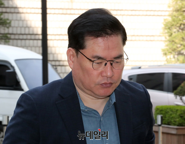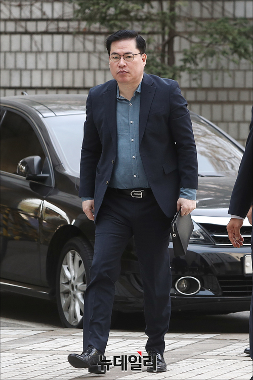 유동규 전 성남도시개발공사 본부장이 3일 오전 서울 서초구 중앙지방법원에서 열린 특정범죄가중처벌등에관한법률위반 공판에 출석하고 있다.