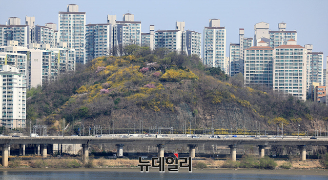 고온현상이 이어지고 있는 3일 오전 동호대교 남단에서 바라본 응봉산. 개나리와 진달래가 만개해 있다.