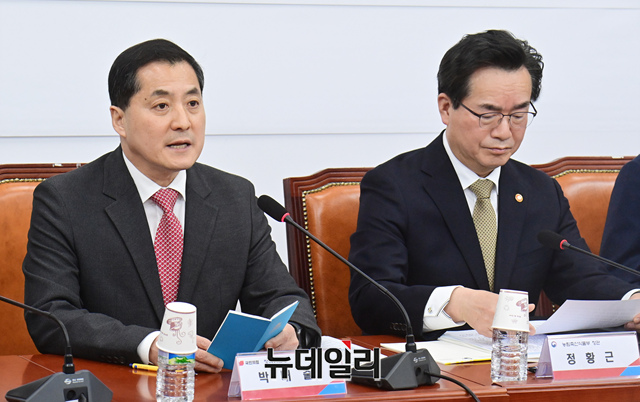 박대출 국민의힘 정책위의장이 6일 국회에서 열린 양곡관리법 재의요구 후속대책 관련 민·당·정 간담회에서 발언을 하고 있다.