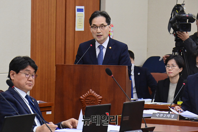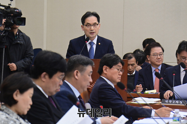 한기정 공정거래위원장이 6일 오후 국회에서 열린 정무위원회 전체회의에서 제안설명을 하고 있다.