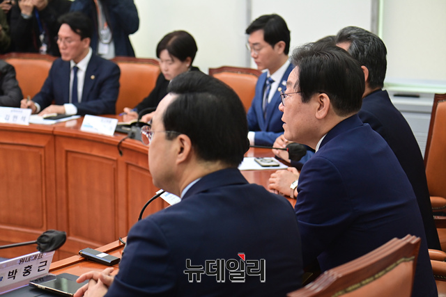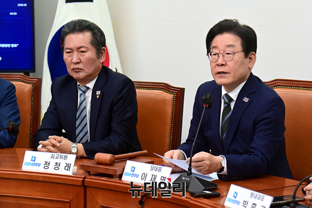 이재명 더불어민주당 대표가 10일 오전 국회에서 열린 최고위원회의에서 모두발언을 하고 있다.