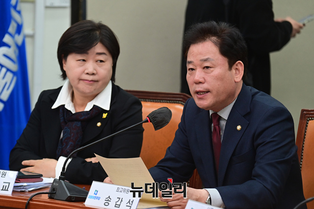 송갑석 더불어민주당 최고위원이 10일 오전 국회에서 열린 최고위원회의에서 모두발언을 하고 있다.