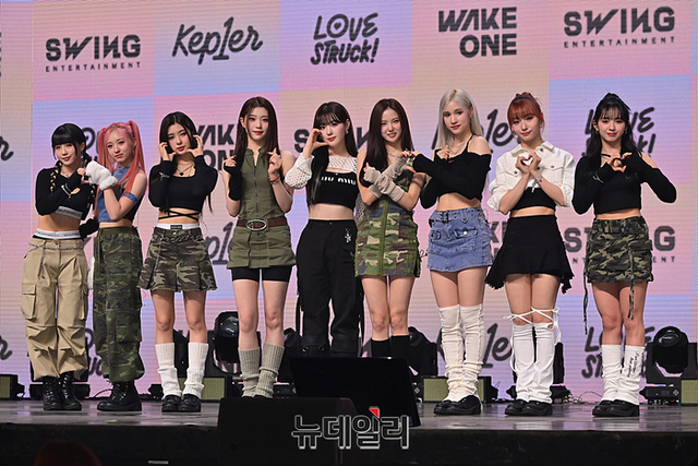 걸그룹 케플러(Kep1er)가 10일 오후 서울 광진구 예스24 라이브홀에서 열린 미니 앨범 '러브스트럭' 발매 기념 쇼케이스에서 포토타임을 갖고 있다.