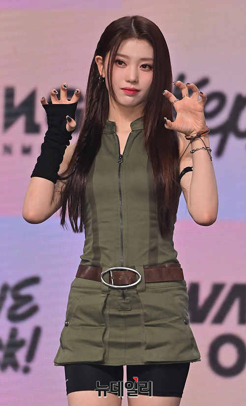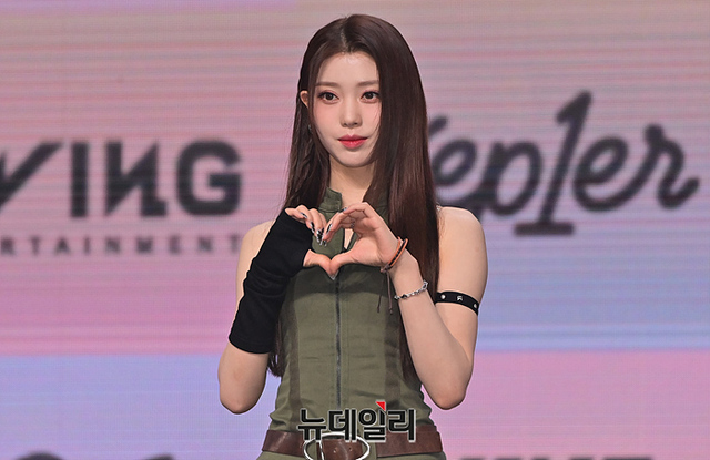 걸그룹 케플러(Kep1er) 샤오팅이 10일 오후 서울 광진구 예스24 라이브홀에서 열린 미니 앨범 '러브스트럭' 발매 기념 쇼케이스에서 포토타임을 갖고 있다.
