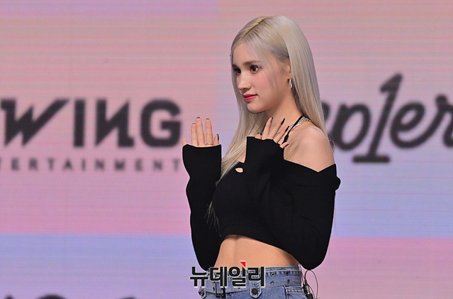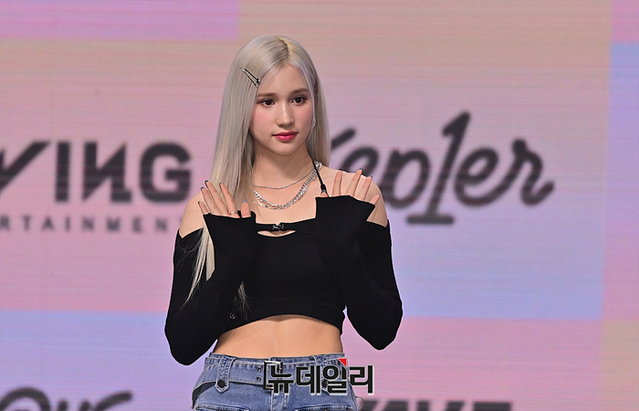 걸그룹 케플러(Kep1er) 휴닝바히에가 10일 오후 서울 광진구 예스24 라이브홀에서 열린 미니 앨범 '러브스트럭' 발매 기념 쇼케이스에서 포토타임을 갖고 있다.
