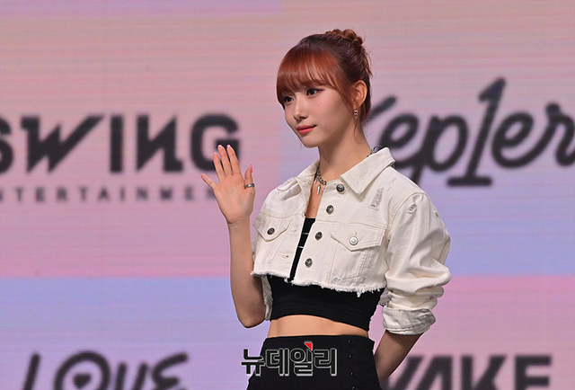 걸그룹 케플러(Kep1er) 서영은이 10일 오후 서울 광진구 예스24 라이브홀에서 열린 미니 앨범 '러브스트럭' 발매 기념 쇼케이스에서 포토타임을 갖고 있다.