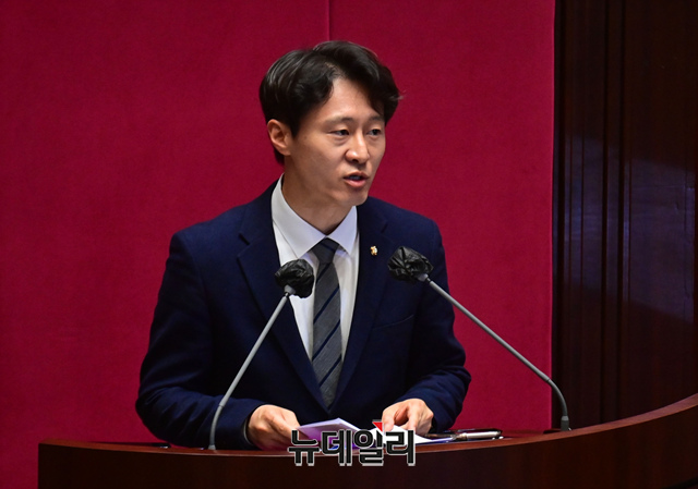 이탄희 더불어민주당 의원이 10일 오후 국회 본회의장에서 열린 국회의원 선거제도 개선에 관한 결의안 심사를 위한 전원위원회에서 발언을 하고 있다.