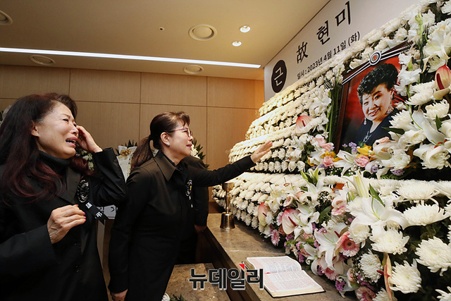 [포토] 원로가수 현미 영결식, 눈물로 떠나보내는 사람들