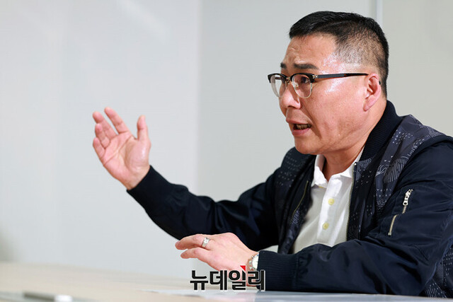 황경구 대한민국애국순찰팀 단장이 10일 오후 서울 중구 뉴데일리 사무실에서 김명수 대법원장의 공관 사적 이용 문제에 대해 인터뷰를 갖고 있다.