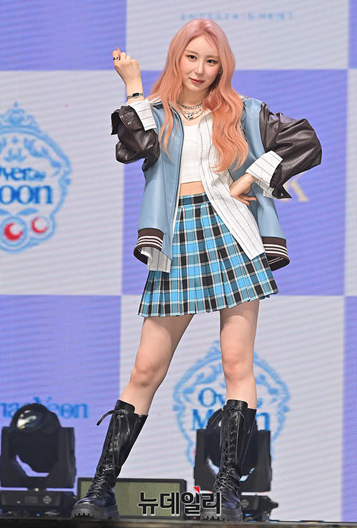 가수 이채연이 12일 오후 서울 광진구 예스24 라이브홀에서 열린 두 번째 미니앨범 '오버 더 문(Over The Moon)' 발매 쇼케이스에서 포토타임을 갖고 있다.이번 앨범은 타이틀곡 '노크(KNOCK)'를 포함한 '인트로:라인 바이 라인(Intro : Line By Line)' '아이 돈 워너 노우(I Don’t Wanna Know)' '돈 비 어 절크(Don’t Be A Jerk)' '라이크 어 스타(Like A Star)'까지 총 5곡이 수록됐다. 음원은 오후 6시 공개.