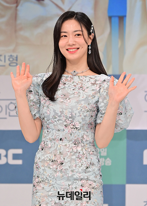 배우 정우연이 13일 오전 서울 마포구 MBC 신사옥에서 열린 MBC 일일드라마 '하늘의 인연' 제작발표회에서 포토타임을 갖고 있다.