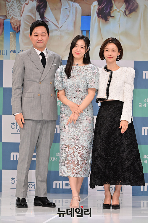 배우 김유석, 정우연, 고은미가 13일 오전 서울 마포구 MBC 신사옥에서 열린 MBC 일일드라마 '하늘의 인연' 제작발표회에서 포토타임을 갖고 있다.