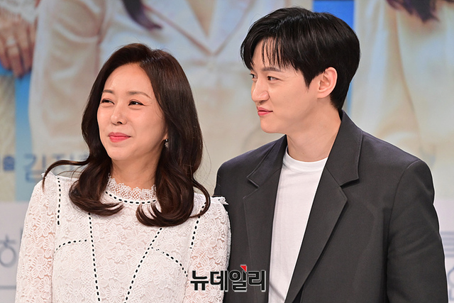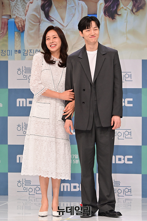 배우 조미령과 서한결이 13일 오전 서울 마포구 MBC 신사옥에서 열린 MBC 일일드라마 '하늘의 인연' 제작발표회에서 포토타임을 갖고 있다.