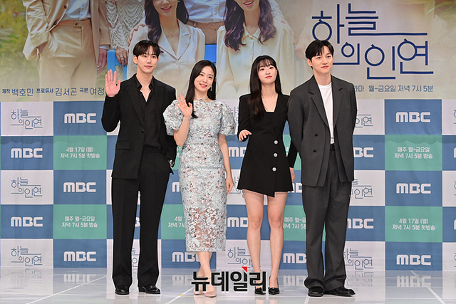 배우 진주형, 정우연, 전혜연, 서한결이 13일 오전 서울 마포구 MBC 신사옥에서 열린 일일드라마 '하늘의 인연' 제작발표회에서 포토타임을 갖고 있다.