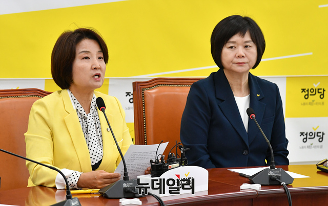 이은주 정의당 원내대표가 17일 오전 국회에서 열린 상무집행위원회의에서 모두발언을 하고 있다.