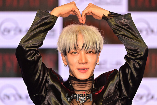 가수 이기광이 17일 오후 서울 강남구 일지아트홀에서 열린 첫 번째 솔로 정규앨범 'PREDATOR(프레데터)' 쇼케이스에서 포토타임을 갖고 있다.
