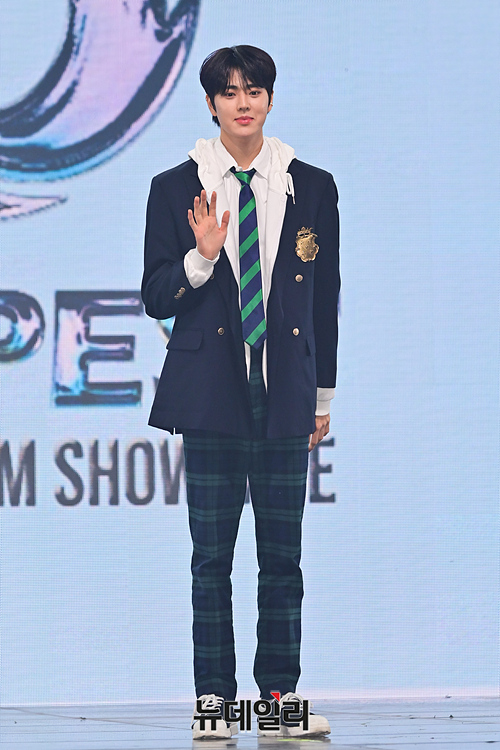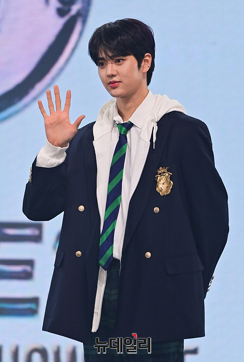 보이그룹 템페스트(TEMPEST) 은찬이 17일 오후 서울 광진구 예스24라이브홀에서 열린 네 번째 미니앨범 '폭풍전야' 발매 쇼케이스에서 포토타임을 갖고 있다.