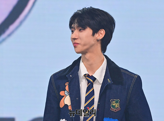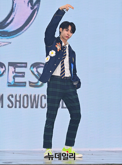 보이그룹 템페스트(TEMPEST) 화랑이 17일 오후 서울 광진구 예스24라이브홀에서 열린 네 번째 미니앨범 '폭풍전야' 발매 쇼케이스에서 포토타임을 갖고 있다.