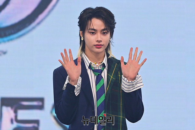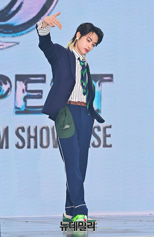 보이그룹 템페스트(TEMPEST) 한빈이 17일 오후 서울 광진구 예스24라이브홀에서 열린 네 번째 미니앨범 '폭풍전야' 발매 쇼케이스에서 포토타임을 갖고 있다.