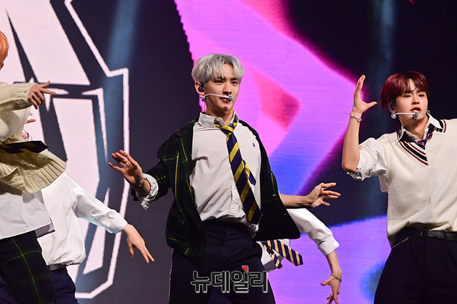 보이그룹 템페스트(TEMPEST)가 17일 오후 서울 광진구 예스24라이브홀에서 열린 네 번째 미니앨범 '폭풍전야' 발매 쇼케이스에서 신곡 '프릭 쇼(Freak Show)' 무대를 선보이고 있다.