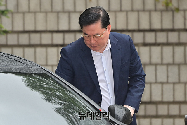 유동규 전 성남도시개발공사 본부장이 18일 오전 서울 서초구 중앙지방법원에서 열린 특정범죄가중처벌등에관한법률위반 공판에 출석하고 있다.
