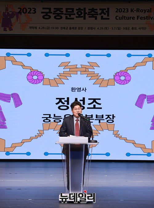 정성조 문화재청 궁능유적본부장이 18일 오전 서울 중구 한국의집에서 열린 '2023 궁중문화축전'기자간담회에서 환영사를 하고 있다.'궁중문화축전'은 아름다운 고궁을 배경으로 다채로운 전통문화 활용 콘테츠를 선보이는 문화유산 축제다. 올해는 '오늘, 궁을 만나다'를 슬로건으로 4월 29일부터 5월 7일까지 9일간 경복궁, 창덕궁, 덕수궁, 창경궁, 경희궁과 종묘·사직단 일대에서 개최한다.축전은 28일 오후 창경궁 일대에서 진행되는 '창경궁 명칭 환원 40주년 기념 퍼레이드'와 개막제로 시작을 알린다.