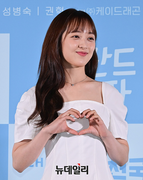 배우 김보라가 19일 오전 서울 성동구 메가박스 성수점에서 열린 드라마 '핀란드 파파' 제작발표회에서 포토타임을 갖고 있다.