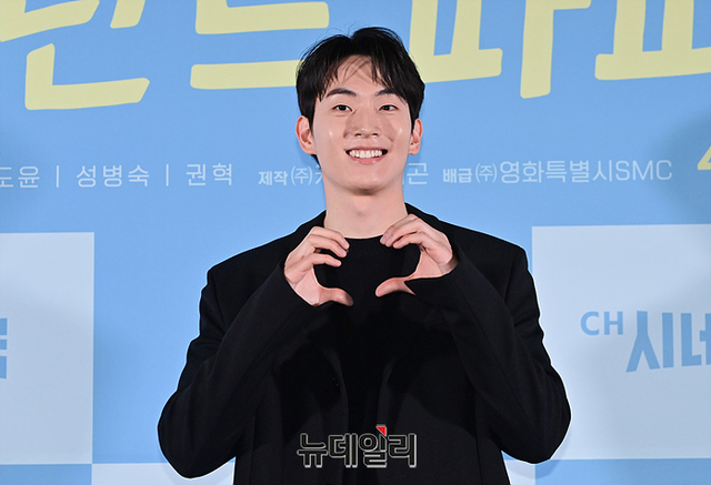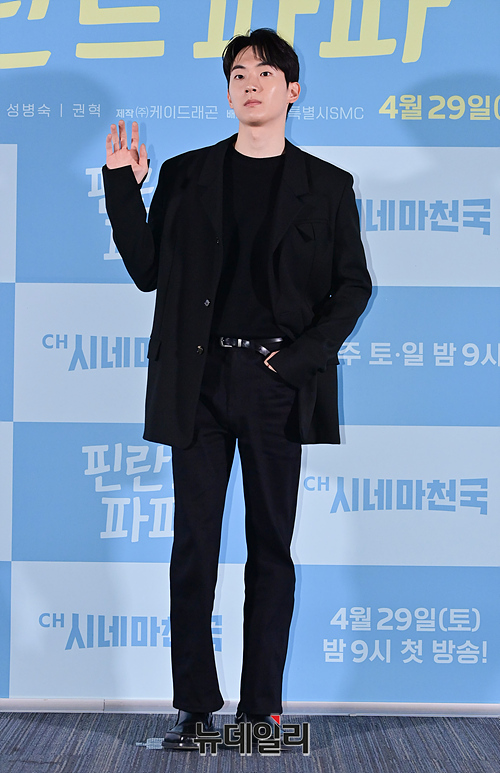 배우 김준호가 19일 오전 서울 성동구 메가박스 성수점에서 열린 드라마 '핀란드 파파' 제작발표회에서 포토타임을 갖고 있다.
