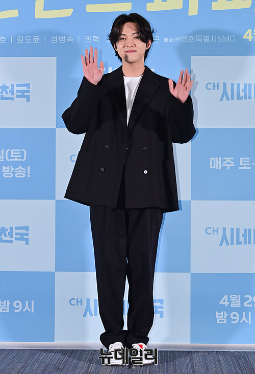 배우 장도윤이 19일 오전 서울 성동구 메가박스 성수점에서 열린 드라마 '핀란드 파파' 제작발표회에서 포토타임을 갖고 있다.