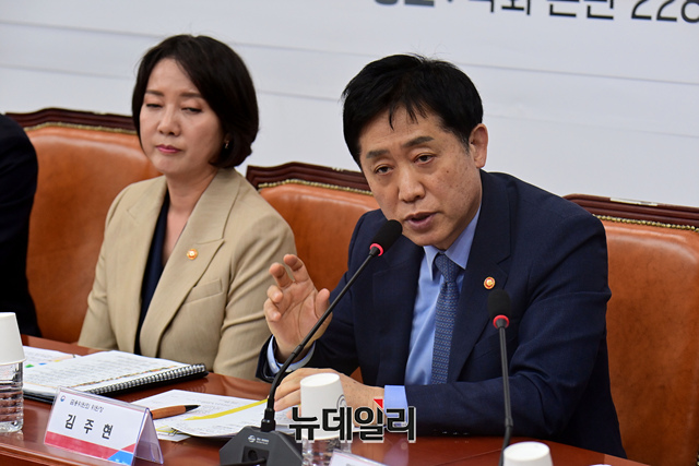 김주현 금융위원장이 19일 국회에서 열린 신성장 동력 확충을 위한 벤처 스타트업 지원 대책 민·당·정 협의회에서 발언을 하고 있다.