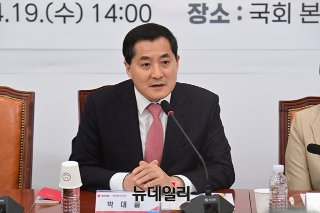 박대출 국민의힘 정책위의장이 19일 국회에서 열린 신성장 동력 확충을 위한 벤처 스타트업 지원 대책 민·당·정 협의회에서 발언을 하고 있다.
