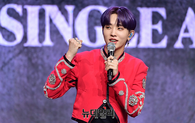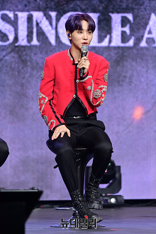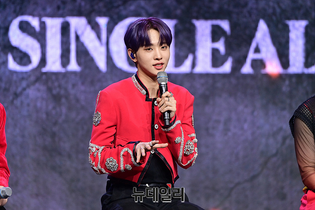 보이그룹 드리핀(DRIPPIN) 이협이 19일 오후 서울 용산구 블루스퀘어에서 열린 세 번째 싱글앨범 '세븐 신스(SEVEN SINS)' 쇼케이스에서 취재진의 질문에 답하고 있다.