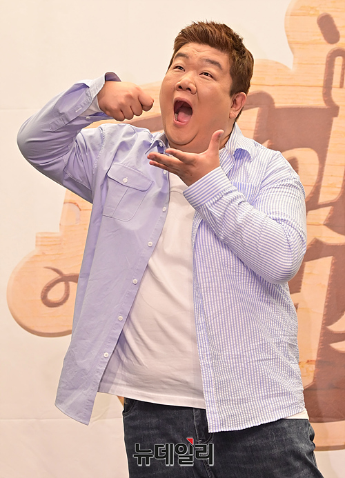 개그맨 유민상이 20일 오후 서울 마포구 스탠포드 호텔에서 열린 iHQ 예능 '맛있는 녀석들' 제작발표회에서 포토타임을 갖고 있다.