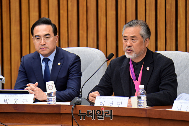 이정민 이태원참사 유가족협의회 대표 직무대행이 20일 국회에서 열린 이태원 참사 진상규명 특별법 공동발의 기자회견에서 발언을 하고 있다.