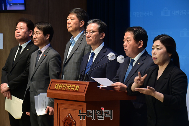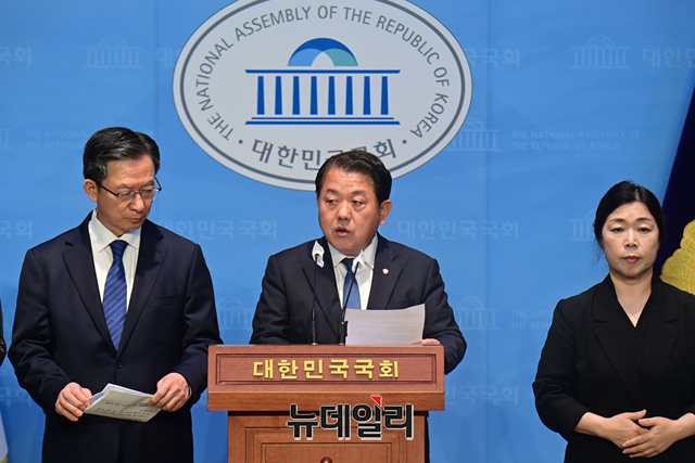 김병주 더불어민주당 의원이 20일 오후 국회 소통관에서 윤석열 정부 우크라이나 군사 지원 반대 기자회견에서 발언을 하고 있다.