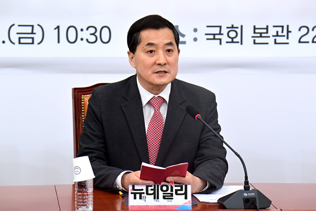 박대출 국민의힘 정책위의장이 21일 오전 국회에서 열린 온라인 다크패턴 근절대책 당정협의회에서 발언을 하고 있다.