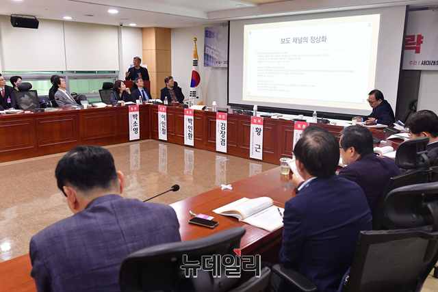 새미래포럼 제5차 '공영방송 정상화: 좌표와 전략' 정책토론회가 21일 오후 국회의원회관에서 열리고 있다.이날 토론회는 왜곡된 공영방송 체제의 실태와 문제점을 짚어보고, 공영방송 정상화를 위한 대안을 모색하기 위해 마련됐다.김장겸 전 MBC 사장이 좌장을 맡았으며 발제는 '공영방송 정상화 : 좌표와 전략'이라는 주제로 황근 선문대학교 미디어커뮤니케이션학부교수가 나섰다.이어진 토론은 ▲권순범 KBS 이사 ▲박소영 행동하는자유시민 상임대표 ▲박인환 바른사회시민회의 공동대표 ▲이인철 전 방송문화진흥회 이사 ▲황창근 홍익대학교 교수가 참여했다.
