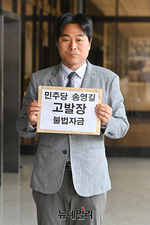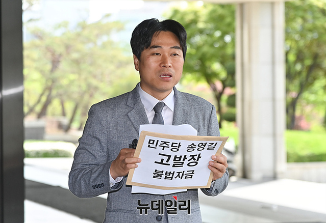 이종배 서울시의회 의원이 24일 오전 서울 서초구 중앙지검에서 송영길 더불어민주당 전 대표를 정당법, 정치자금법 위반 혐의로 형사고발하며 입장을 밝히고 있다.