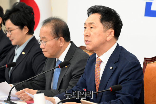 김기현 국민의힘 대표가 24일 오전 국회에서 열린 최고위원회의에서 모두발언을 하고 있다.