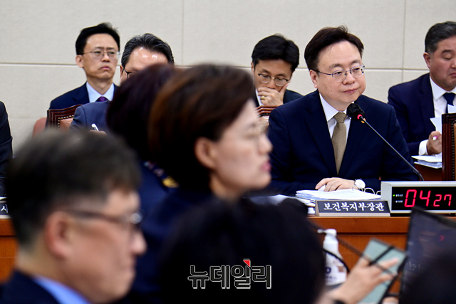 조규홍 보건복지부 장관이 24일 국회에서 열린 보건복지위원회 전체회의에서 의원들의 질문에 답하고 있다.