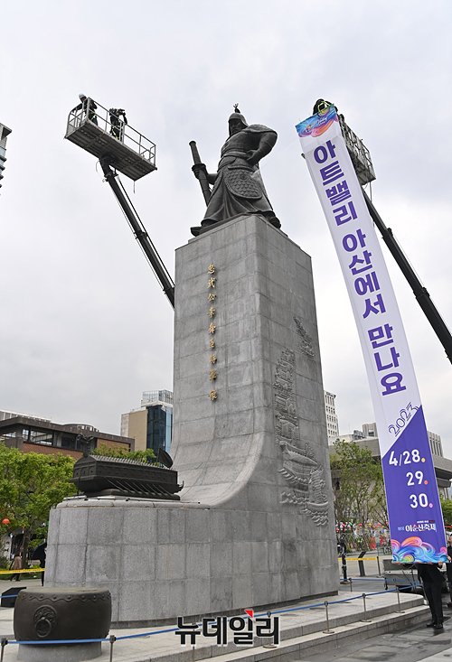 [포토] 광화문광장 이순신 장군 동상 친수식
