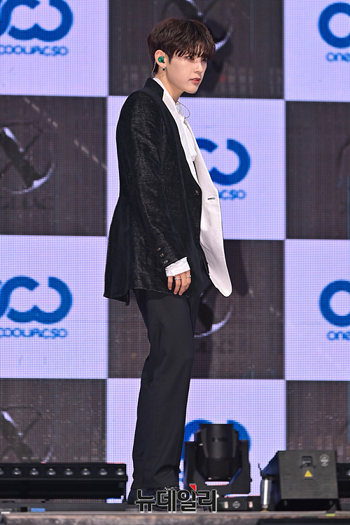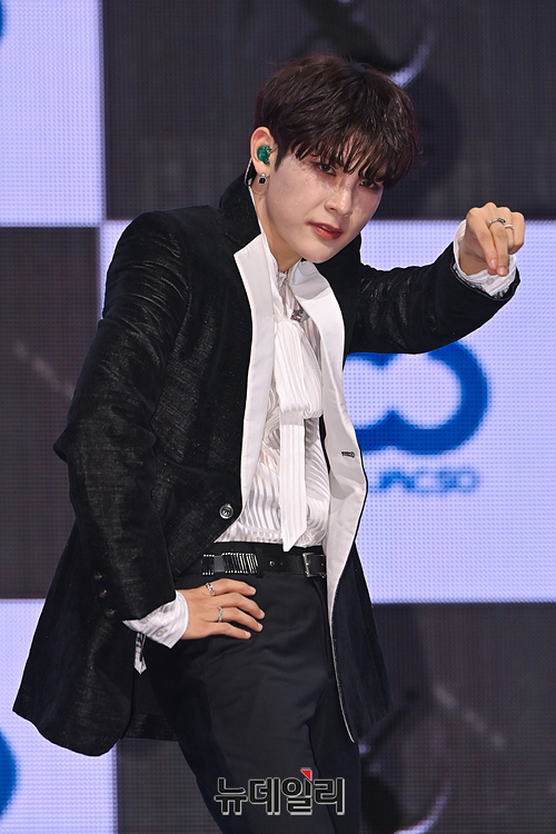 신인 아이돌그룹 소디엑(XODIAC) 규민이 25일 오후 서울 광진구 예스24라이브홀에서 열린 데뷔 기념 쇼케이스에서 포토타임을 갖고 있다.