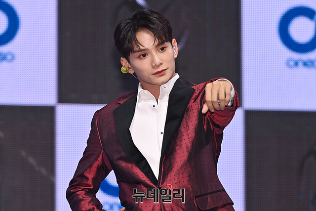 신인 아이돌그룹 소디엑(XODIAC) 자얀이 25일 오후 서울 광진구 예스24라이브홀에서 열린 데뷔 기념 쇼케이스에서 포토타임을 갖고 있다.