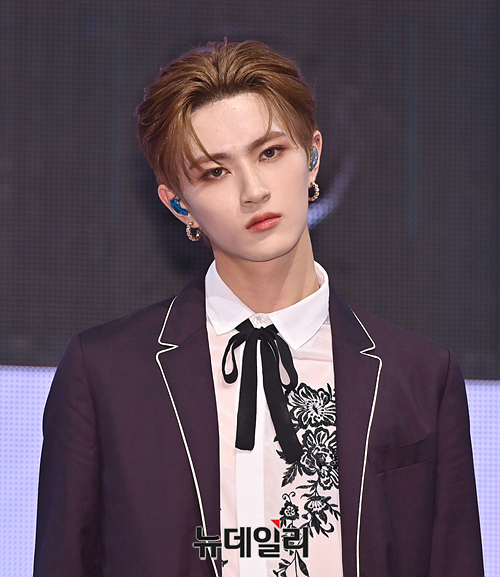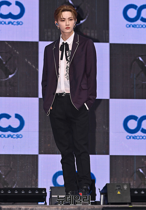 신인 아이돌그룹 소디엑(XODIAC) 리오가 25일 오후 서울 광진구 예스24라이브홀에서 열린 데뷔 기념 쇼케이스에서 포토타임을 갖고 있다.