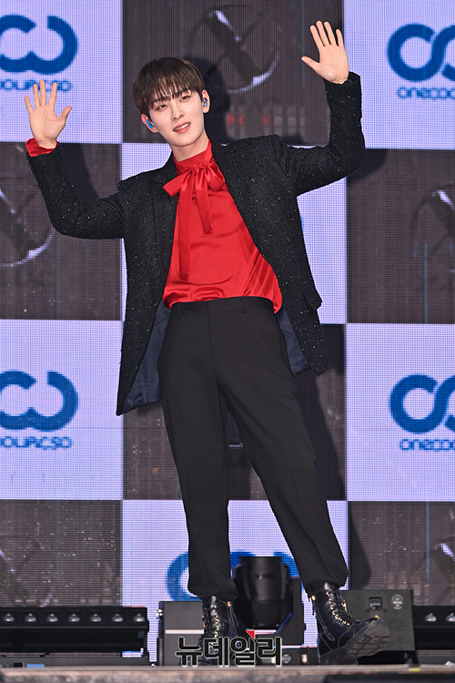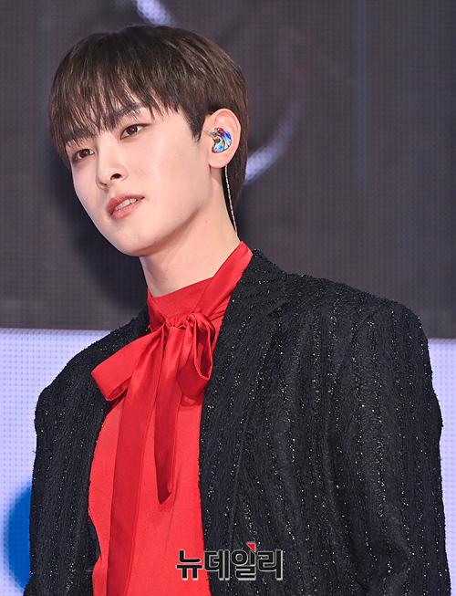 신인 아이돌그룹 소디엑(XODIAC) 현식이 25일 오후 서울 광진구 예스24라이브홀에서 열린 데뷔 기념 쇼케이스에서 포토타임을 갖고 있다.